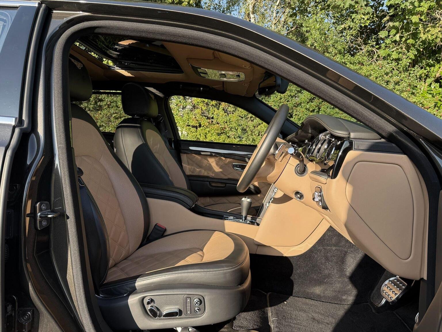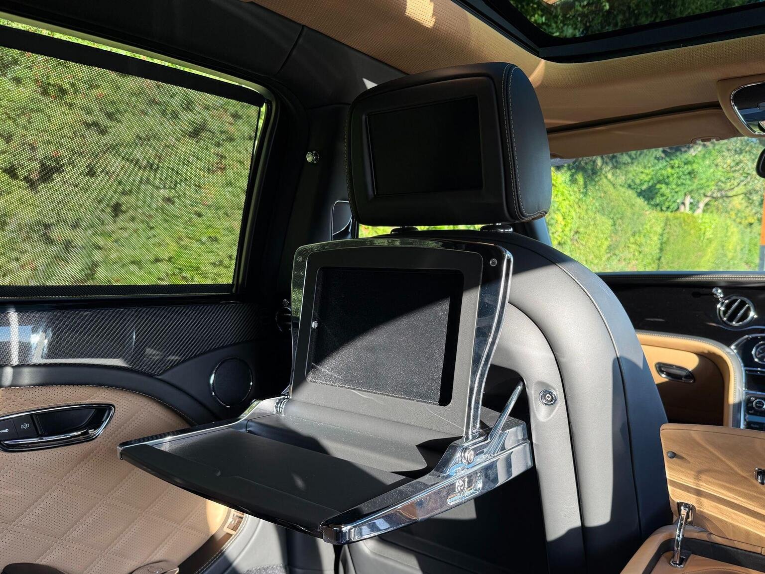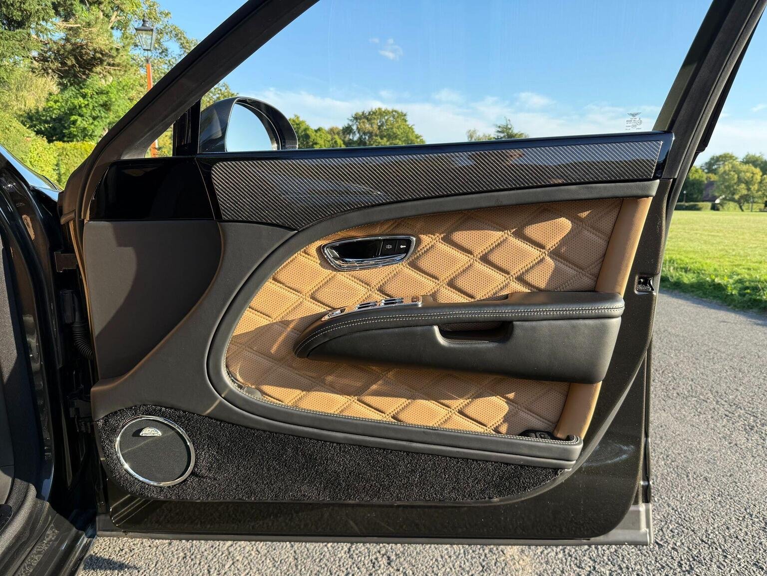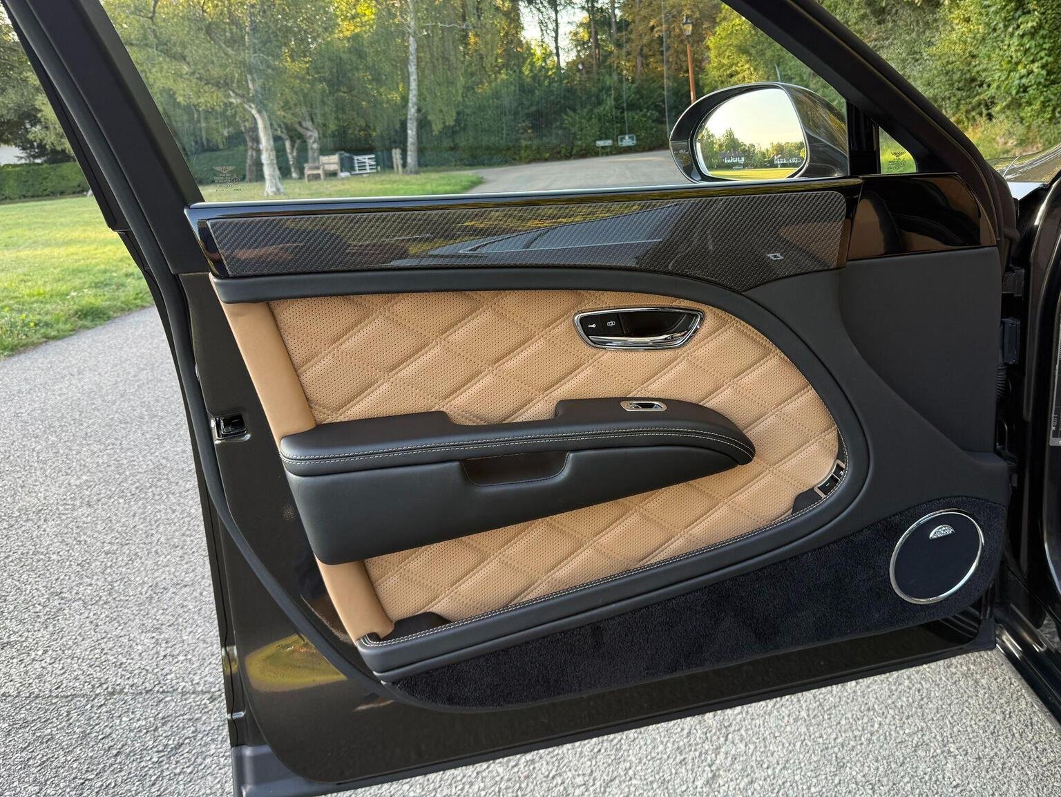 Digital TV Tuner in Addition to DAB radio, Entertainment Specification, Naim for Bentley Premium Audio System, Rear Entertainment Package Incorporating Two 8in LCD Screens to Headrests DVD Player to Rear Armrest, Rear View Camera, Bentley GPS Tracking System - Full Fitment, Valet Key, 21in Alloy Wheels - 5 Spoke Two Piece - Dark Tinted, Bright Stainless Steel Door Pillar Finisher, Bentley Wing Badge to Waistrails and Fascia, Chromed Radiator Shell with Dark Tint Matrix Style Grille, Flying B Radiator Mascot, Jewel Fuel Filler Cap, Large Panel Glass Sunroof to Front Cabin, Privacy Glass to Rear Screen and Rear Side Windows, Ambient Interior Mood Lighting, Comfort Specification, Deep Pile Wilton Carpet Mats to Front and Rear, Diamond Quilted Hide to Seats - Camel, Hand Cross Stitching, iPad Picnic Tables, Piano Black with Carbon Fibre Waistrail Inlays, Seat Ventilation and Massage Function to Front and Rear Seats, Speed Premier Specification, Steering Wheel - 4 Spoke Duo-Tone Hide Trimmed, Twin Illuminated Fold Down Vanity Mirrors, Veneer - Piano Black, Veneered iPod Drawer and Minor Gauge Panel, Wi-Fi Hotspot and UPnP Media Player