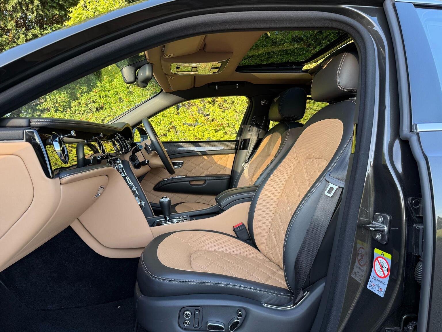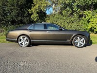 12V Power Socket in Boot, 12v Power Sockets in Glovebox, 12v Power Sockets in Rear Centre Armrest and Boot, 21in Alloy Wheels - Mulsanne Speed - Dark Tint, 3-point Seat Belts to Front Seats with Electric Height Adjustment and Memory Function, 3-point Seat Belts to Outer and Centre Rear Seats with Pyrotechnic Pre-Tensioners, 6 x CD Changer Fitted in Glovebox, 60 GB Hard Disc Drive Unit Fitted in Glovebox, 8in High-Resolution Colour Screen to Display Infotainment and Vehicle Systems Information, ABS - Anti Lock Braking System, Acoustic Glazing with Infra Red Reflectivity Interlayer, Additional Rear Cabin A-C Unit with Front and Rear Controls for Fan Speed and Temperature, Airbag - Curtain, Airbag - Front Passenger Deactivation, Airbag - Front and Rear Thorax, Airbag - Intelligent Driver, Airbag - Intelligent Front Passenger, Aluminium Bonnet, Aluminium Closures, Aluminium Doors with Superformed Structure and Extruded Aluminuim Side Impact Beams, Automatic Hill Hold Control, Automatic Ride Height Control Sensitive to Speed and Load, Battery Conditioner with Magnetic Trickle Charging Point Concealed in Rear Registration Plate Recess, Bentley Branded Front Brake Calipers, Bentley GPS Tracking System Provision, Black Matrix Grille to Lower Bumper Apertures, Boot Trimmed in Leather-Carpeted to Match Interior Cabin with Polished Stainless Steel Sill Plate, Bright Finish Interior Fittings in Polished Stainless Steel, Central Multi Media Interface - MMI Rotary Controller with Convenience Keys for System Menus, Cigar Lighter Sockets in Front and Rear Cabin, Concealed Passenger Map Light, Contrast Stitching, Cordless Telephone and Cradle Mounted in Front Armrest with SIM Card Reader in Hard Drive Unit, Cruise Control, DAB Radio, Daytime Running Light Signature, Direct Tyre Pressure Monitoring System with Provision for Speed Related Warning, Document Stowage Compartments to Front Seatbacks, Door Mirrors - Colour Coded, Door Mirrors - Electronically Adjustable with Heating - Power Folding and Two Memory Functions, Double Wishbone Front Suspension, Drilled Alloy Sports Foot Pedals, Drive Dynamics Control - Four Driver Selectable Settings for CDC and Power Steering, Driver-Configurable Choice of Navigation Prompts Compass Infotainment Vehicle or Trip Information, Drivers Instrument Panel Inverted - Aviation-Style Dials for Vehicle and Engine Speed, EBD - Electronic Brake Force Distribution, ESC - Electronic Stability Control, Electrical Height Adjustment for Front Seatbelts with Two Memory Positions, Electrically Operated Privacy Blinds for Rear Windows and Rear Screen - Controlled from Front or Rear, Electrochromatic Auto Dimming Rear View Mirror with On-Off Button, Electronic Parking Brake with Drive Away Assist, Electronically-Controlled Air Springs with Continuous Damping Control - CDC, Embroidered Bentley Emblems to All Seats, Floating-Ellipse Style/LED Rear Lights and Discreet High-Level Stop Light in Rear Screen, Folding Rear Centre Armrest Console Controls for Seating and Air Conditioning, Four Carpet Overmats to Match Cabin Carpet Leather Bound and with Polished Stainless Steel Fixings, Four-Zone Air Conditioning, Front Parking Sensors, Front Passenger Seat - Full Adjustment from Rear Cabin - Controls Housed in Rear Centre Armrest, Front Seat Belts with Pyrotechnic Pre-tensioners and Force Limiters, Front Seats - Easy Entry-Exit Function, Front Seats Two Memory Positions and Easy Entry-Exit Function, Front Wing Vents with Black Matrix Grille, Full iPod and MP3 Player Compatibility Including Full-Colour Album Art Display and Video Playback, HBA - Hydraulic Brake Assistance, Hand Selected Leather to All Trimmed Interior Surfaces inc Fascia Headlining Door Panels, Headlight Washer Jets, Hide-Lined Glovebox with Illumination, Interior Volumetric Alarm System, Keyless Entry System with Chromed Metal Door Handles and Engine Start Button, Leather-Bound Owners Handbook Housed in Dedicated Stowage Shelf Within Glovebox, Light Sensing Auto Operation Headlights, Micro USB for Other Smartphones Including Blackberry, Minor Gauges Panel in Centre Fascia with Fuel Gauge-Analogue Clock with Bentley Motors Inscribed, Mulsanne Audio System, Multi-Function Steering Wheel, Multilink Rear Suspension with Toe and Brake Reaction Control, Painted Radiator Shell with Bright Stainless Steel Matrix Grille and 2D Bentley Winged B Badge, Polished Stainless Steel Brightware to Glass Surrounds, Polished Stainless Steel Embellishers to Doors and Bumpers, Polished Stainless Steel Mulsanne Treadplates and Commissioning Plates, Pollen Filter, Power Boot Lid Operation with Emergency Releases Inside Boot and Under Rear Seat, Power Boot Opening and Closing, Power Windows with One-Touch Operation and Anti-Trap Protection, Rain Sensing Windscreen Wipers, Rear Centre Armrest with Leather-Lined Stowage Compartment, Rear Parking Sensors, Rear Seat ISOFIX Child Seat Fixings with Top Tether Points, Rear Seats Two Memory Positions, Remote Boot Release, Remote Control with Stowage in Centre Console for Rear Seat Control of Infotainment System, Satellite Navigation System Integrated in Vehicles Hard Disc, Seat Belt Force Limiters to Outer Seats, Seats - Front 14-Way Electrical Adjustment, Seats - Lumbar Support for Front, Seats - Lumbar Support for Rear, Sentinel Headlight Functions, Servotronic Speed-Sensitive Power Steering with Two Settings Selectable by Drive Dynamics Control, Seven-Digit Post Code Destination Entry-Active Traffic Information - Market Dependent, Soft Close Power Latching to All Doors for Easy Entry and Exit, Speakers x14, Specially Developed Flat-Cut and Leather-Bound Carpet, Steel Monocoque Body Structure with Front and Rear Energy-Absorbing Crumple Zones, Steering Wheel - 4 Spoke Hide Trimmed, Steering Wheel - Electric Adjustment for Tilt and Reach with Two Memory Positions, Superformed Aluminium Front Wings, Telephone System with Bluetooth Wireless Connectivity, Traction Control, Traditional Polished Stainless Steel B