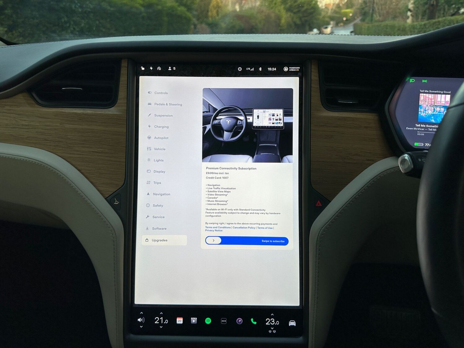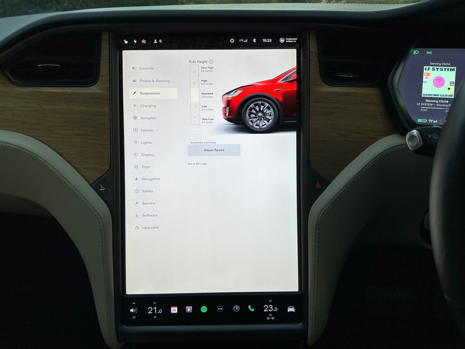 Synergy Motors Are Pleased To Present This Fantastic Tesla Model X. Tesla New Vehicle Warranty Till 28th March 2023 (with the option to extend with Tesla), Tesla Drive Unit & Battery Warranty Till March 2027 with no mileage restriction, Rare 7 Seat Premium Cream Interior with Sub-Zero Weather Pack including 7x Heated Seats & Heated Steering Wheel. Enhanced Autopilot Features Enabled inc distance cruise control, lane steering and Summon, using 8 cameras. MCU 2 inc Netflix & YouTube, combined with Ultra High Fidelity Audio, Premium Interior & Lighting Upgrade with Automatic Doors, Alcantara Headliner, Fog Lights, Parking Sensors, Full Vegan Leather Trim, Smart Air Suspension, Panoramic Glass Roof. Tesla are both London Congestion Charge and Ultra Low Emission Charge Exempt(ULEZ) and have Free Road Tax. This Vehicle Has Smart Air Suspension, which can change the Height Of Car When Required, You Can Then Choose To Remember The Location, So It can Raise Itself When You Are Next At The Same Location. 20" Alloy Wheels, The HomeLink Garage & Gate Opener Will Also Remember Your Location And Open These When You Return. Tesla uses a 17in Capacitive Touchscreen with Media, Communication, Cabin and Vehicle Controls, Which has Up To Date Google Maps, Bluetooth Audio Streaming, Internet Radio, DAB, USB and Radio Options. Front & Rear Parking Sensors Combined With a High Definition Rear View Reverse Camera with side view